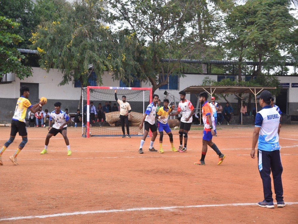 Goal Shot Ball Association of India game was started in Kailasapuram port high school ground Visakhapatnam, Andhra Pradesh (INDIA).Goal Shot Ball Association of India is a team sport in which two teams of five players each (four out court players and a goalkeeper) pass a ball using their hands with the aim of throwing it into the goal of the opposing team. A standard match consists of two periods of 20 minutes, and the team that scores more goals wins.The game is fast and high-scoring professional teams now typically score between 25 and 30 goals each, though lower scores were not uncommon until a few decades ago. Body contact is permitted for the defenders trying to stop the attackers from approaching the goal. No protective equipment is mandated, but players may wear soft protective bands, pads and mouth guards. The set of rules was published in 18th September 2018 by Notla Rajendra Prasad.
